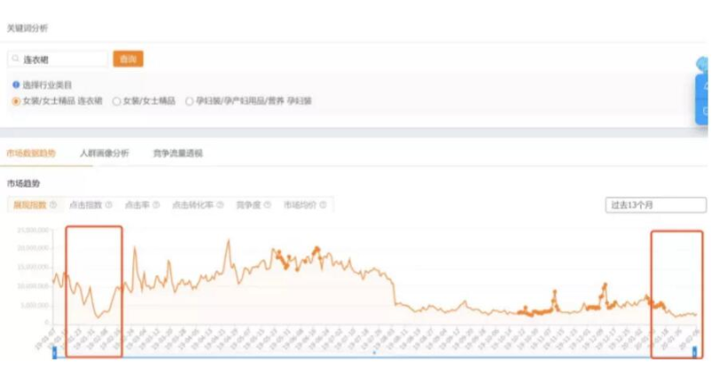 而服饰箱包类几乎没有回升回升之势,例如:连衣裙、女鞋类目,依然处于流量低迷状态。